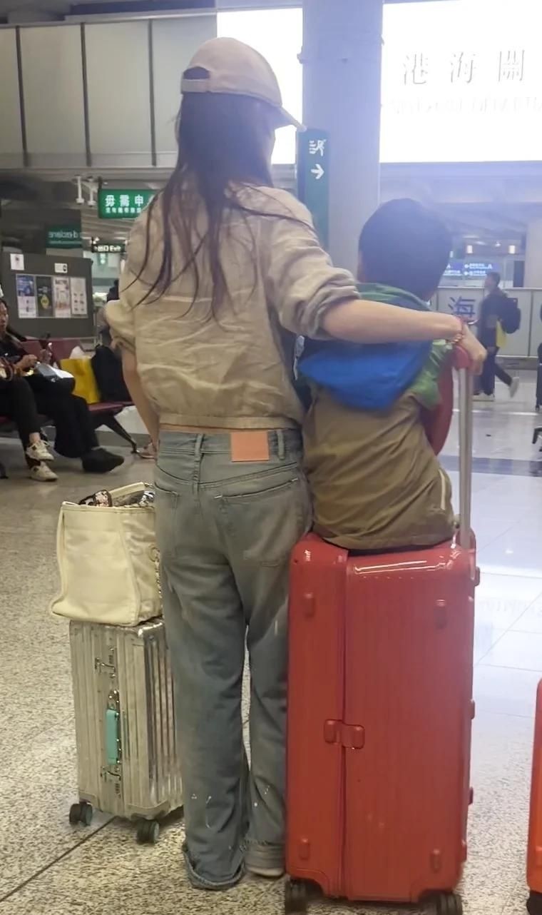 今年8月,又被拍到独自带孩子现身机场,头发凌乱,外套褶皱明显,仿佛久未打理。