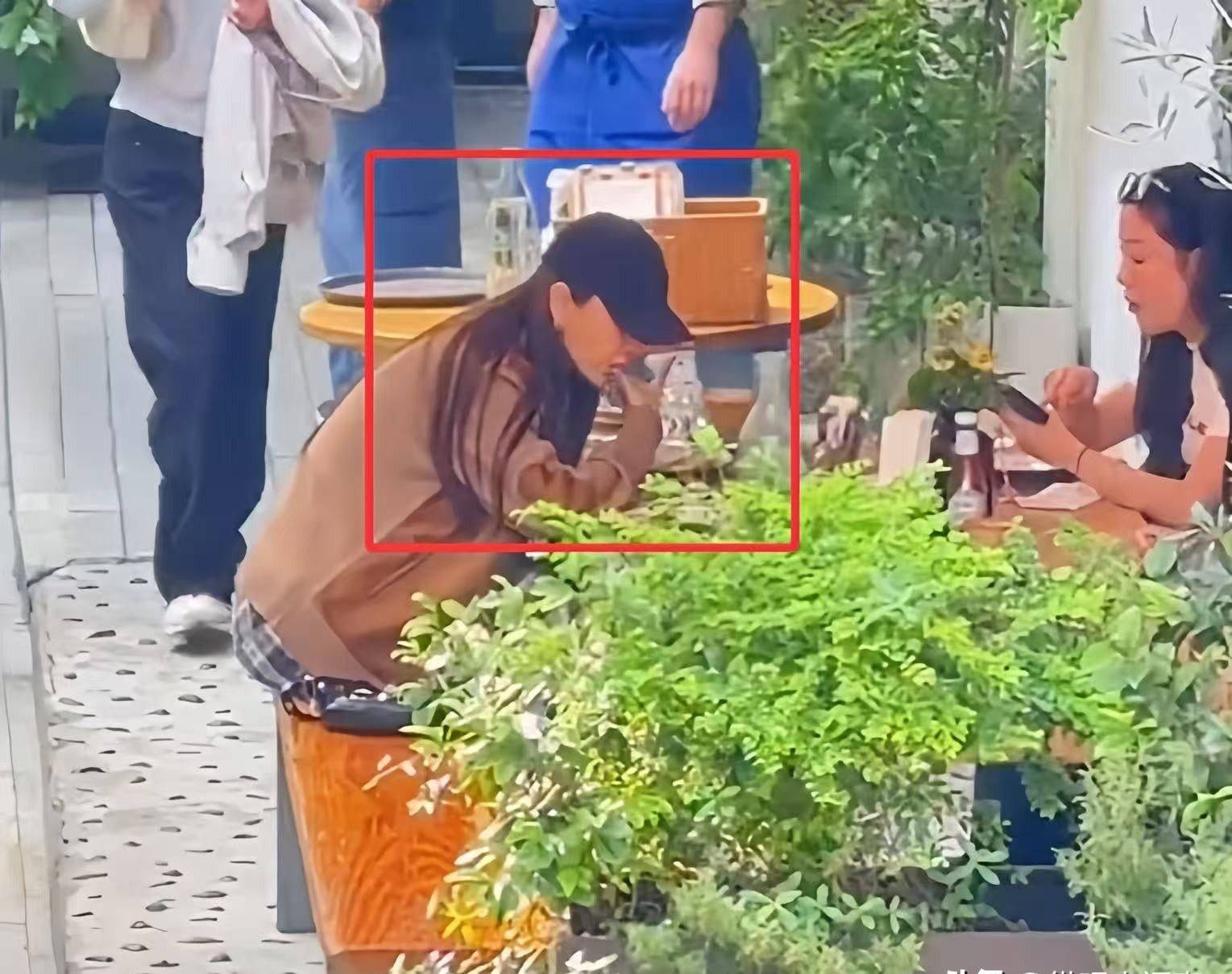 有趣的是,尽管吃相放松,她仍不忘拿出手机对镜自检,确认脸部是否依旧上镜。